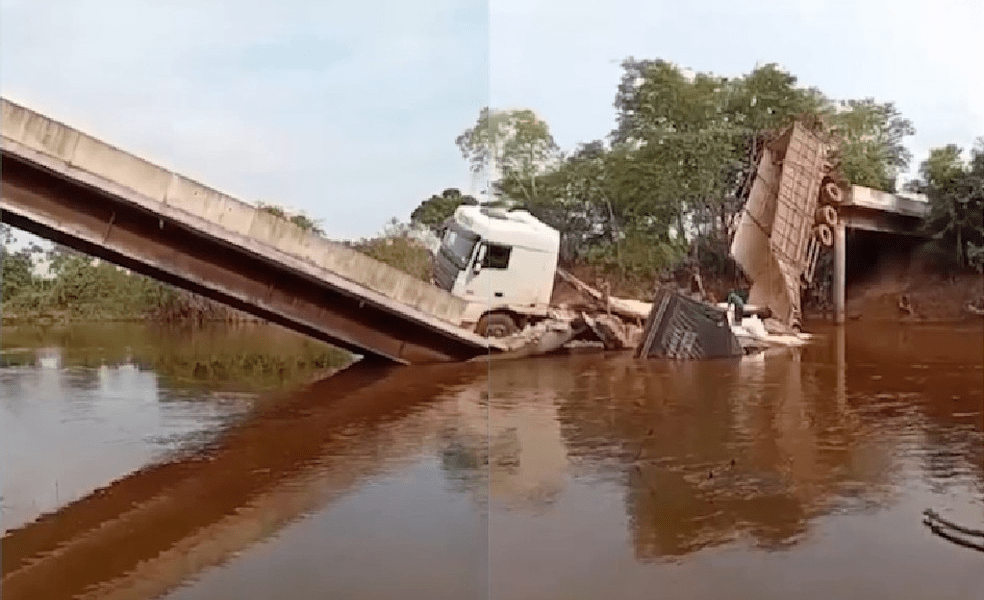 Uma ponte desabou no Sul do Pará neste final de semana. Um caminhão carregado de grãos trafegava na estrutura no momento em que ela quebrou e...