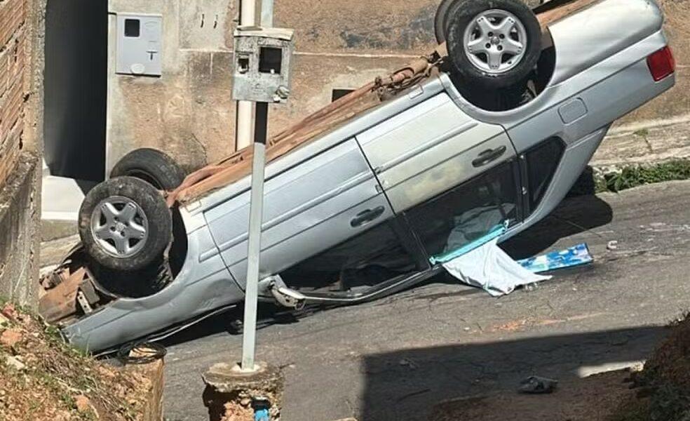 Um carro com cinco pessoas da mesma família, sendo dois adultos e três crianças, capotou na Rua Américo Ferreira Passos, na altura do número 748, no...