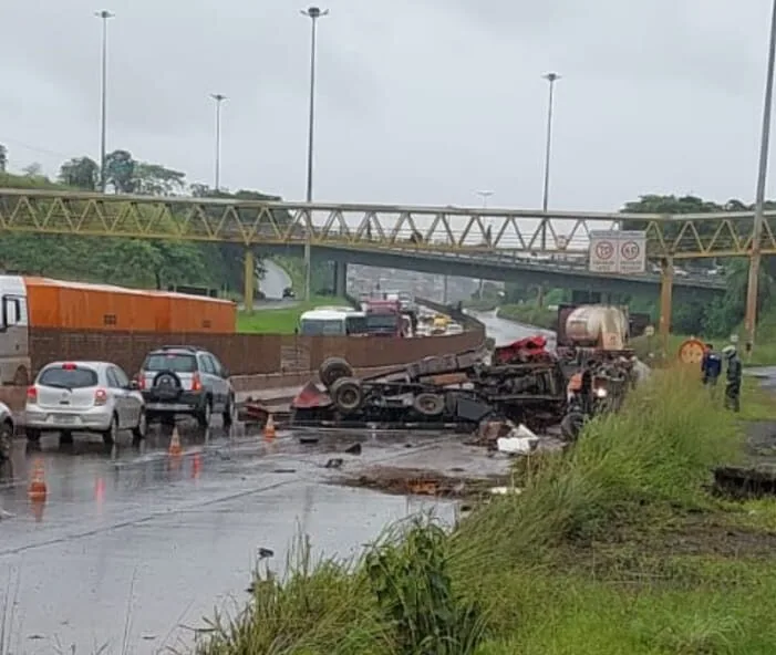 Agentes de trânsito permanecem no local para orientar os motoristas e sinalizar desvios pela pista marginal. As causas do acidente seguem sendo apuradas, e a liberação total da via depende da retirada dos veículos envolvidos e da avaliação das condições de segurança da pista.