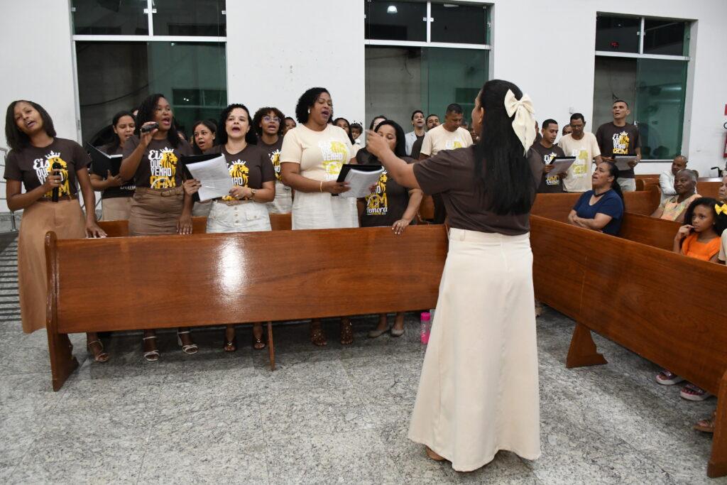 Posicionado estrategicamente próximo ao púlpito do templo, recentemente dotado de corrimãos fabricados em aço inox, o Novo Amanhecer coloriu o ambiente com as cores sugestivas do uniforme que escolheram para a ocasião. Todos abraçaram a ideia da criativa identificação, inclusive Hemanuelly , filha de uma das integrantes, de apenas 2 anos de idade.