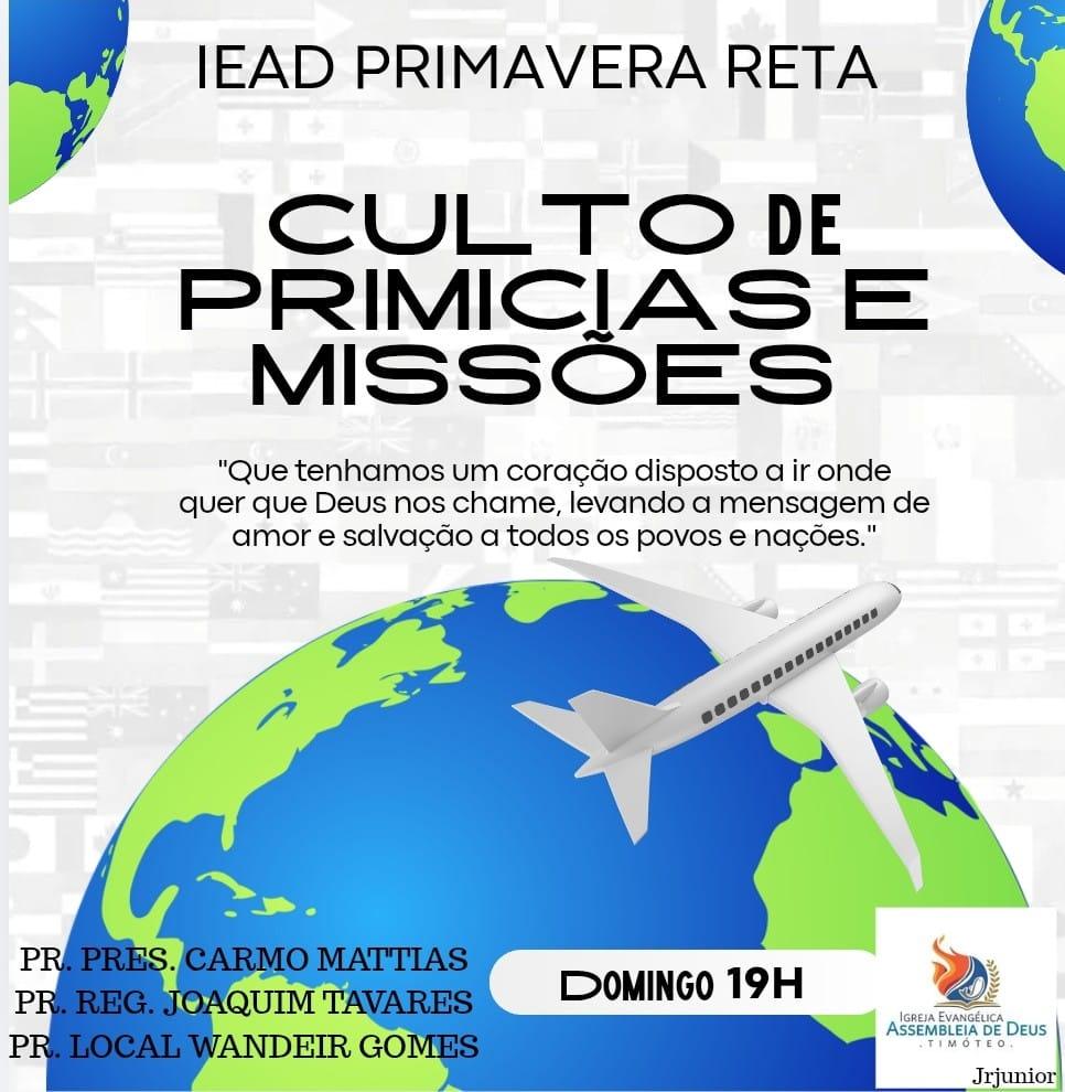 Derivado do latim míssil (enviar), referindo-se ao envio de pessoas para proclamar o evangelho, estabelecer o reino de Deus e realizar trabalhos sociais/humanitários, muitas vezes cruzando fronteiras geográficas ou culturais, missões será o foco do culto deste domingo (8) na congregação da Assembleia de Deus do Primavera (reta), unidade ligada à regional do Olaria e sob a direção do pastor Wandeir Gomes.