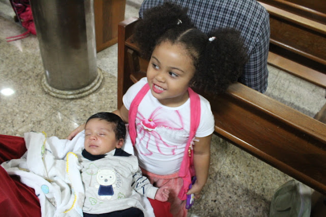 O bisavô, Dc. Antônio Rodrigues, e a bisavó do Hian, Maria Sebastiana, a mãe Jéssica, segurando a fralda (o pai da criança está trabalhando em outro Estado) e a tia Helenita, de vermelho |