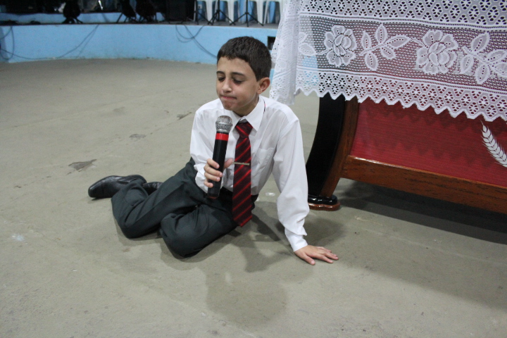 pregador mirim, na noite desta quinta-feira, onde esteve acompanhado dos seus pais, Eliane e Éber, a avó materna, Maria dos Anjos e a irmã