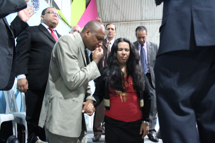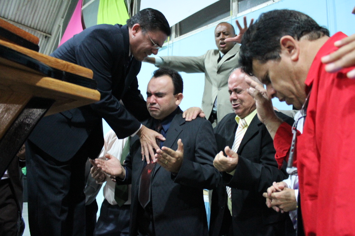 | Pr. Francisco recebe a oração dos obreiros e igreja após ter sido declarado novo responsável pela obra. |