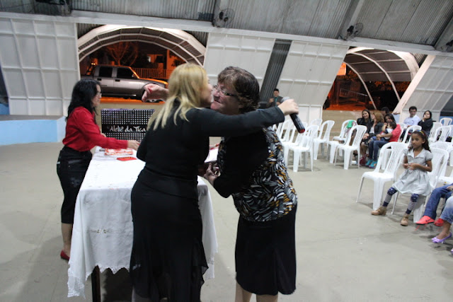| Missionária Ruth lê poesia para os casais. |