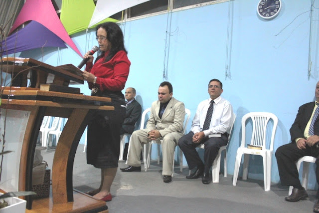 Missionária Ruth lê poesia para os casais. |