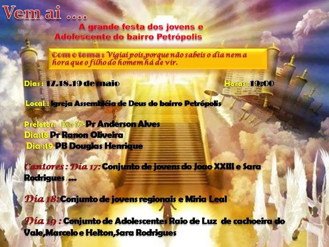 Notícias COMEÇA AMANHÃ… Publicado 12 anos atrás no 16 de maio de 2013 Por Blog do Silas Compartilhe esta publicação Me siga no Instagram. Clique na imagem. Blog do SilasSou Silas Rodrigues, o Silas do Blog, fundador deste site, com quase 15 anos de existência. Gleiziane é minha esposa e repórter fotográfica. Tópicos Relacionados: Até A Próxima NO PRÓXIMO SÁBADO… Não Perca EM VÍDEO, PASTOR QUE DEIXA A DIREÇÃO DA ASSEMBLEIA DE DEUS MINISTÉRIO DO TABOÃO, EM TIMÓTEO, IRÁ AGRADECER PELOS APOIOS RECEBIDOS. Continuar Lendo Você pode gostar