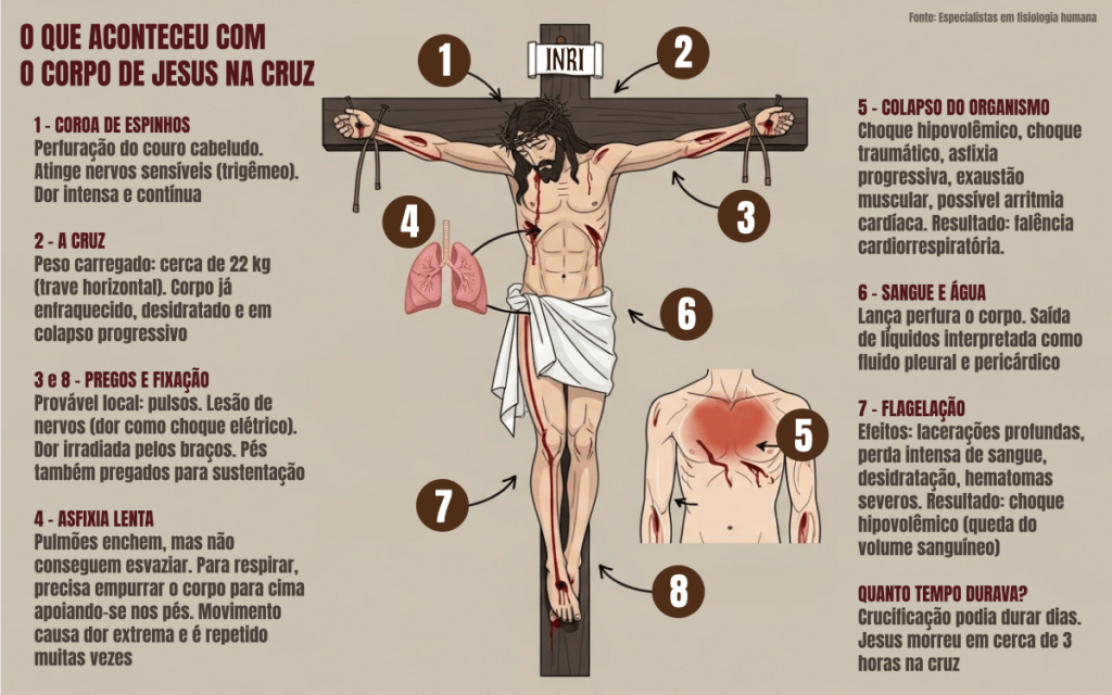 Estudos da medicina forense e da história lançam luz sobre a dimensão física extrema daquele episódio, revelando que a crucificação não foi apenas um símbolo espiritual, mas um processo calculado de dor, exaustão e morte lenta. Dentro dessa vasta análise médica feita ao longo dos anos, alguns fatos voltaram a evidência nas redes sociais nesta semana.