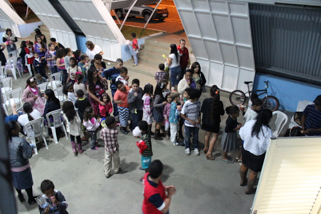 centenas de crianças de diversas denominações na cidade, acompanhadas de suas