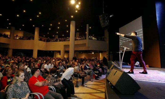 Sabe aquela imagem tradicional de uma igreja evangélica, onde as paredes são todas brancas e o espaço bem iluminado? Esqueça. Fundada em julho de 2013, a Lagoinha, em Charitas, foge dos padrões, investe na luz baixa, no som alto, no jogo de iluminação e no estilo despojado. E dá certo. Em um ano e oito meses, a igreja já conta com 5.700 fiéis. Só no culto do último domingo à noite, 89 jovens foram batizados, numa dinâmica que mais parece com a de grandes shows internacionais — com piscina, mudança de piso do palco, fotos, vídeos e GoPro. Três mil pessoas lotaram o espaço de dez mil metros quadrados, mesmo com o temporal que atingiu a cidade.