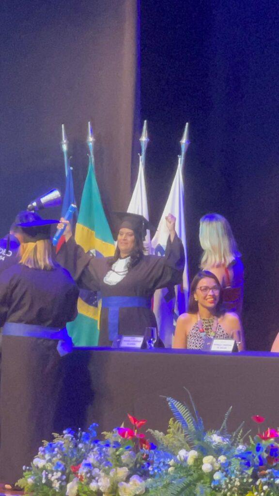 Entre os alunos que concluíram o curso de RH (Recursos Humanos), em solenidade na noite da última terça-feira (3), no Espaço Cultural Usiminas, em Ipatinga, estava a irmã Maria Aparecida Gomes de Souza Santos, da Assembleia de Deus do bairro Alvorada.