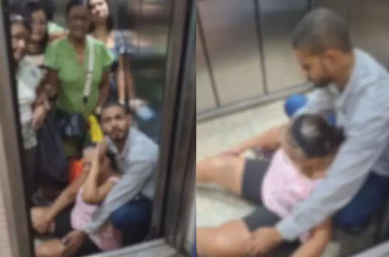 “Nesse momento, a grávida se segurou no espelho, de seis meses, inclusive. A senhora, pelo fato de ter passado por uma cirurgia recentemente, não teve sustentação no joelho dela”, complementou. Após a parada no térreo, as pessoas que estavam na galeria ajudaram a retirar os passageiros da cabine.