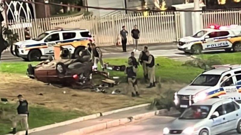 A perseguição se estendeu pela Avenida Magalhães Pinto e por diversas outras vias da cidade. O acompanhamento tático só chegou ao fim no trevo de acesso à Avenida Tancredo Neves, perto da antiga rodoviária. Nesse ponto, o motorista, um jovem de 21 anos, perdeu o controle da direção. Consequentemente, o veículo capotou de forma violenta.