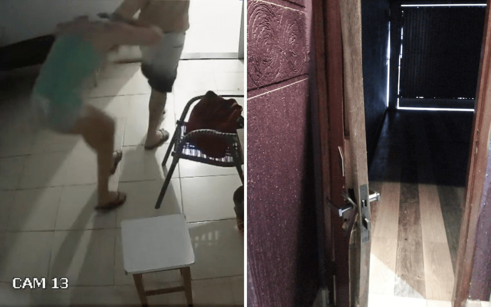 “Foi quando ela falou: ‘é você, então você pode pagar, porque senão vou pedir para a polícia vir cá’. Ele se revoltou, começou a agredir ela, chutou a porta do quarto, quebrou e puxou ela pelos cabelos”, relatou o delegado.