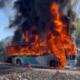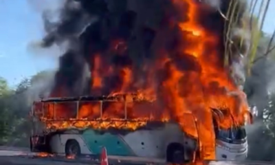 Ônibus com funcionários de fábrica agrícola pega fogo; ninguém se feriu