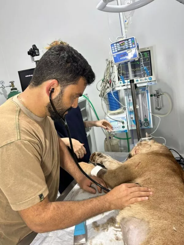 “Nós fizemos um atendimento emergencial e conseguimos estabilizá-la. Mantivemos os parâmetros vitais dela estáveis, porém o quadro é muito grave”, informou o médico veterinário.