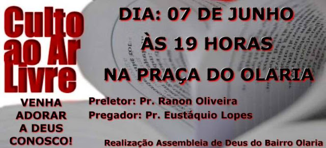 bairro Olaria, sede do Ministério Adão Araújo, não será mais no próximo dia 24,