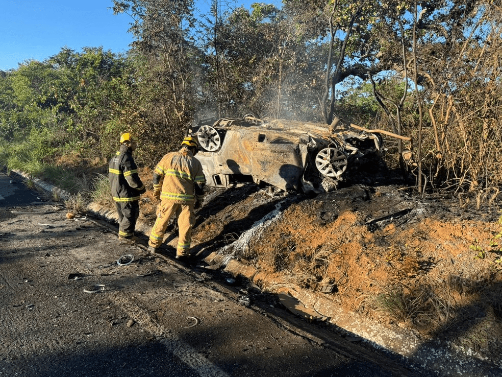 Um motorista morreu carbonizado e a esposa dele e as duas filhas do casal ficaram feridas em uma batida na MGC-135, em Mirabela, neste sábado (14). O outro condutor envolvido no acidente também faleceu. A ocorrência ainda está em andamento.