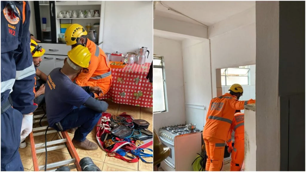 Os militares precisaram usar técnicas de salvamento em altura para resgatar a idosa, que teve ferimentos nas duas pernas. Depois da retirada, ela foi levada à Casa de Caridade de Carangola por uma equipe do Samu (Serviço de Atendimento Móvel de Urgência).