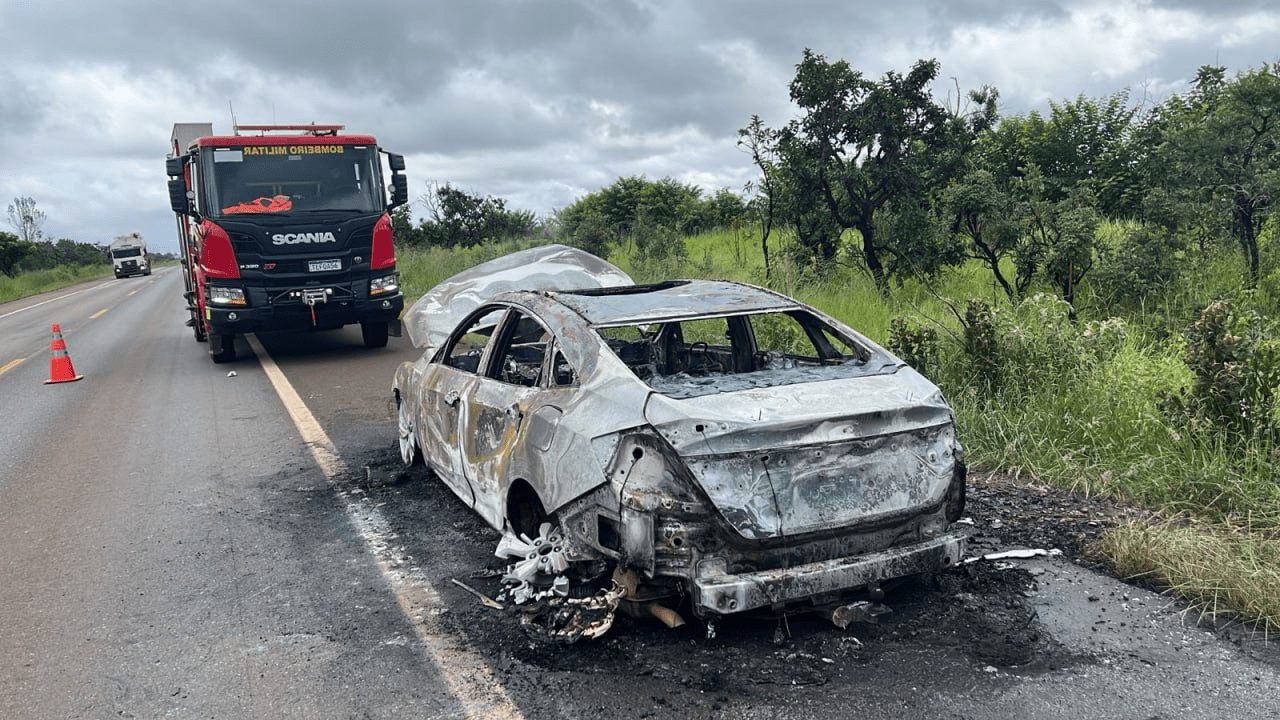 Nesta manhã de sábado (21), militares do Corpo de Bombeiros em Patos de Minas foram acionados para combater incêndio em um automóvel na rodovia BR 146, próximo ao distrito de Santana de Patos.