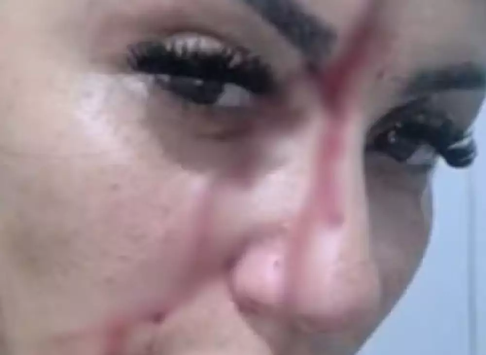 “Ela enfiou um pedaço de vidro na minha testa e rasgou meu rosto e meu peito”, disse a cabeleireira, que precisou de oito pontos no rosto e cinco no peito.
