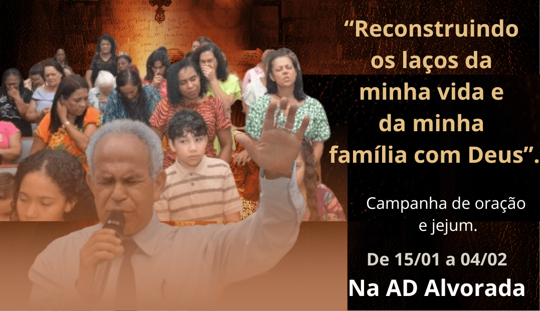 “Serão 21 dias de jejum e oração para libertação e transformação de vidas, buscando, em Deus, vitória”, afirmou pastor Eustáquio Lopes, acrescentando que o tema escolhido para a campanha está baseado em Neemias, “Reconstruindo os laços da minha vida e da minha família com Deus”.