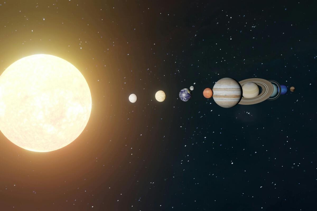 Os planetas do Sistema Solar orbitam o Sol quase no mesmo plano, como objetos em uma mesa. Por isso, em determinados períodos, parecem alinhados quando vistos da Terra.