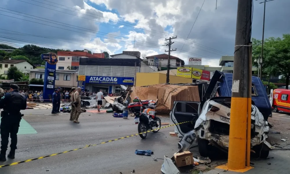 Um grave acidente envolvendo uma carreta desgovernada deixou ao menos 10 pessoas feridas na tarde de sexta-feira (30), em Chapecó, no Oeste de Santa Catarina. O...