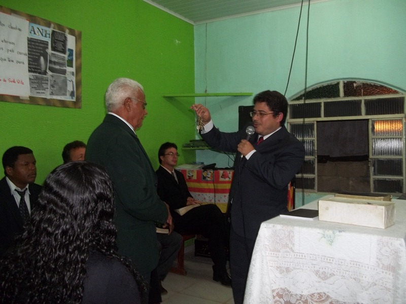 Pr. Claudinei empossa seu sucessor, Pr. Geraldo Juventino. |