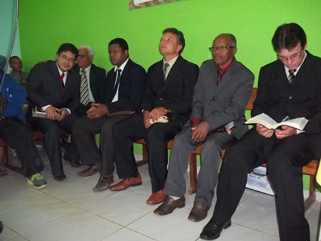 Da esquerda para a direita: Pr. Claudinei, seu substituto, Pr. Geraldo, Pr. Edson, Pb. Neilson, Pr. Sebastião Moreira e o regional, Pr. Joaquim Tavares. |