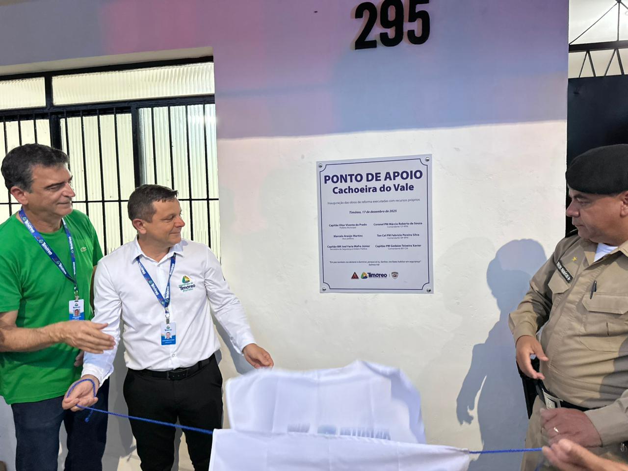Durante a solenidade, o prefeito de Timóteo, Capitão Vitor Prado, destacou a importância da obra para a comunidade. “Nós estamos muito felizes aqui no Cachoeira do Vale, porque estamos inaugurando uma base para que os nossos policiais militares tenham mais conforto para atender a população. Essa parceria da Prefeitura com a Polícia Militar tem dado muito certo. Estamos investindo em tecnologia, como câmeras inteligentes e reconhecimento facial, e em breve teremos reforço de efetivo com a formação de 350 novos soldados, além da chegada de seis novas motocicletas para combater crimes cometidos com motos. Segurança é essencial para que o cidadão possa viver tranquilo, abrir seu comércio, levar os filhos à escola e brincar nas ruas. Contamos com a colaboração da população, por meio de canais como o Disque 181, porque segurança pública é dever do Estado, mas também responsabilidade de todos”, afirmou o prefeito.
