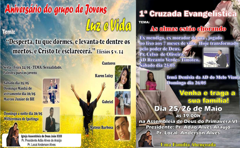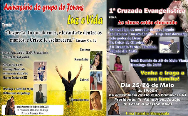 Vida”, estará pregando Wilteremax, de Ipatinga. No Primavera VI, onde acontece