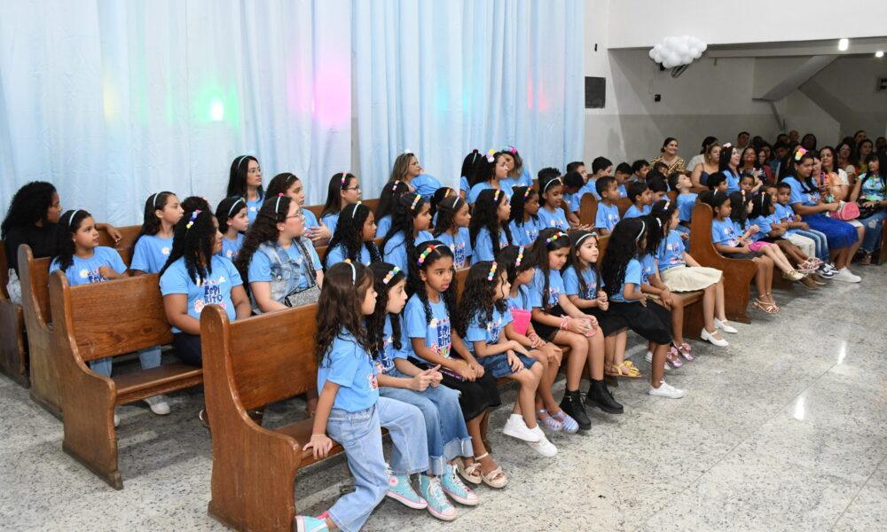 Com gratidão a Deus pelo mais de meio século de existência, charme das meninas e meninos e elegância das abnegadas tias, a festa do conjunto infantil...