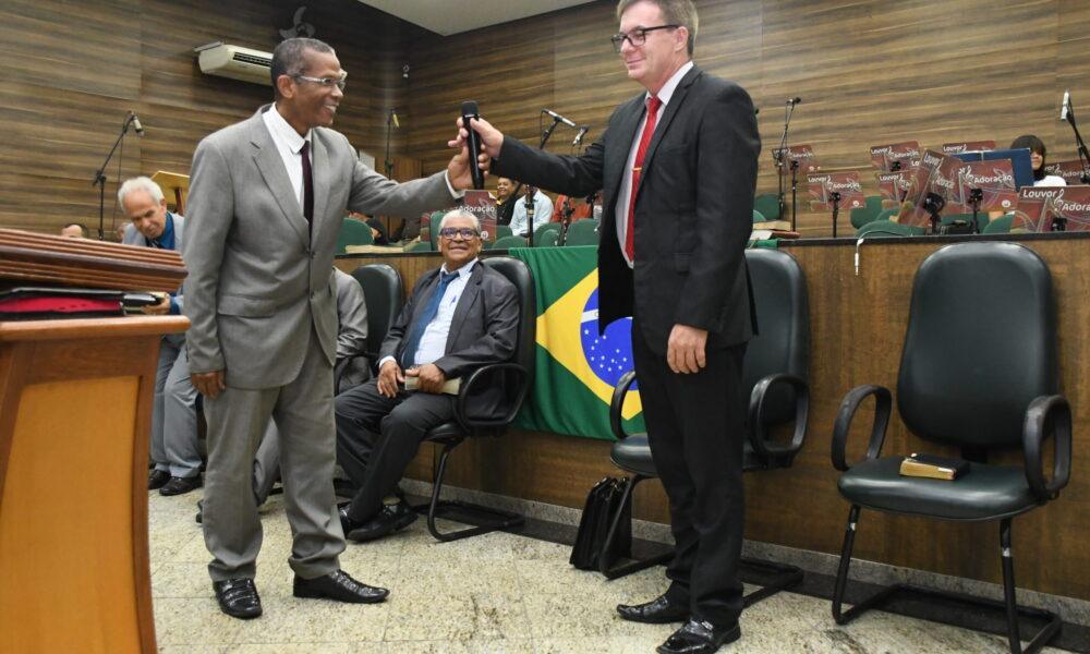 O pastor Eustáquio Lopes Pereira, 1º vice-presidente da AD Timóteo, presidiu o ato de transição pastoral ocorrido na noite desta quarta-feira (8) na Assembleia de Deus...