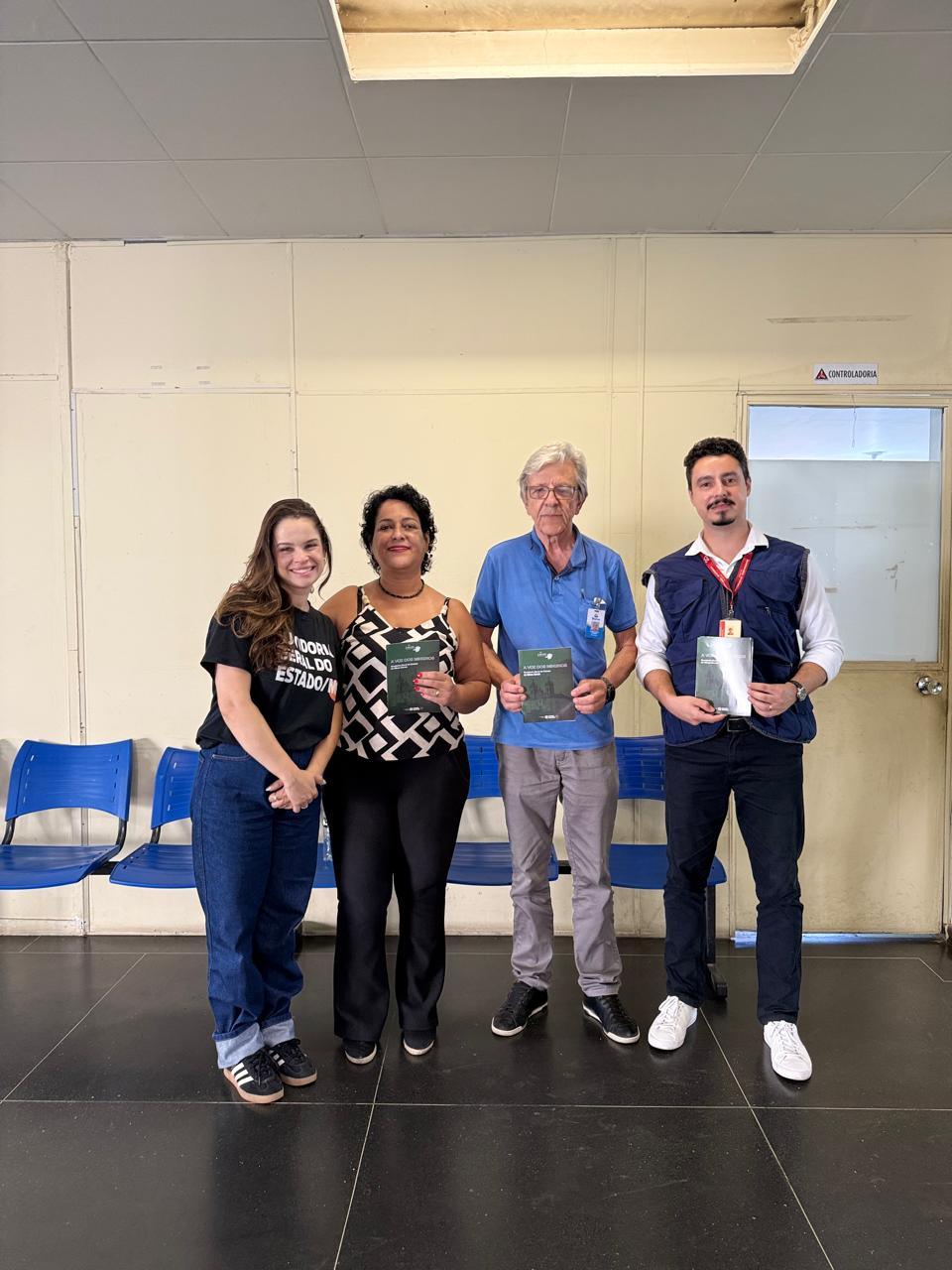 Durante a visita, estiveram presentes Diogo de Vasconcelos, ouvidor de Fazenda, Patrimônio Público e Licitações; Carolyne Oliveira, coordenadora da Ouvidoria Móvel; e Marcella Fabrini, da Assessoria de Comunicação da OGE.