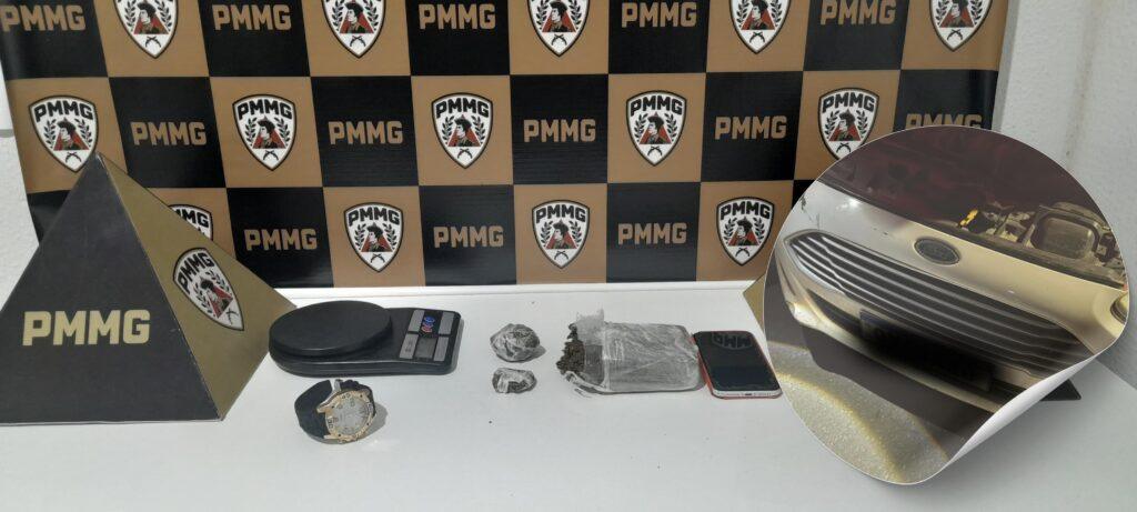 Ao todo, foram apreendidos duas buchas e meia barra de maconha, vários eppendorfs vazios, uma balança de precisão, um aparelho celular, além do veículo recuperado, que foi apreendido e removido ao pátio credenciado. O jovem e os materiais foram encaminhados à Delegacia de Plantão, em Ipatinga.