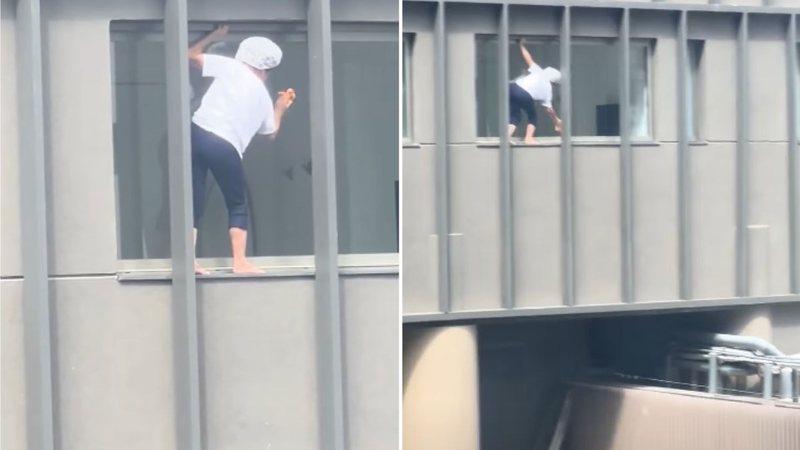 VÍDEO: Mulher é flagrada limpando janela a 15 metros de altura sem proteção